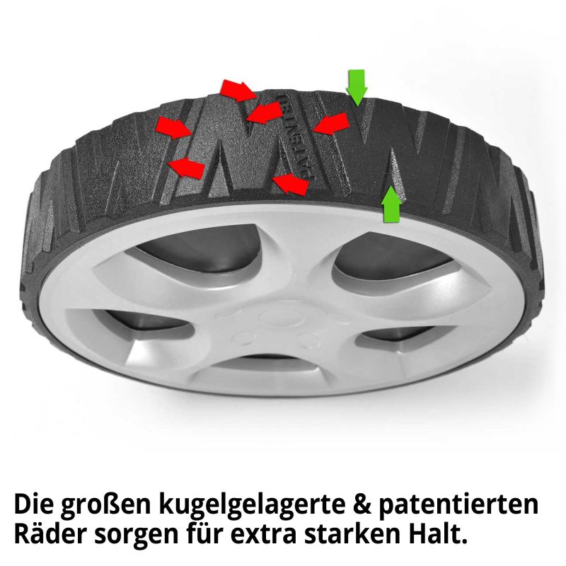 Effizienter Radantrieb: Mit konstanten 3,6 km/h und dem hochwertigen GT General Transmissions Aluminium-Getriebe manövrieren Sie den 41 kg schweren Mäher federleicht über Ihr Grundstück.